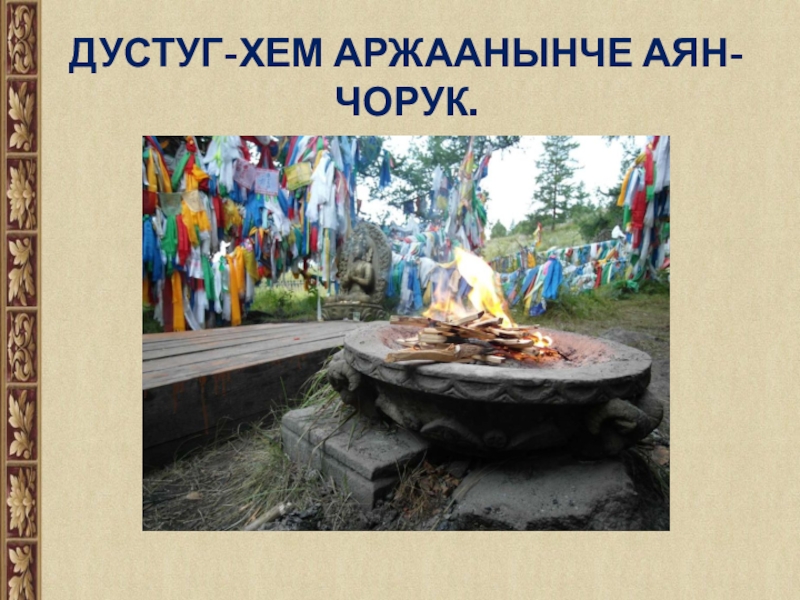 Слайд 1Дустуг-Хем аржаанынче аян-чорук.