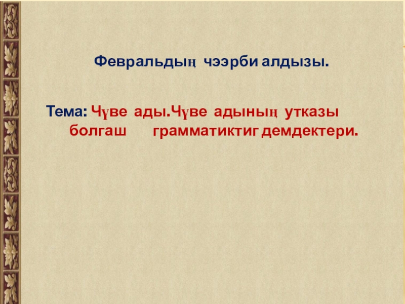 Тема: Чүве ады.Чүве адыныӊ утказы