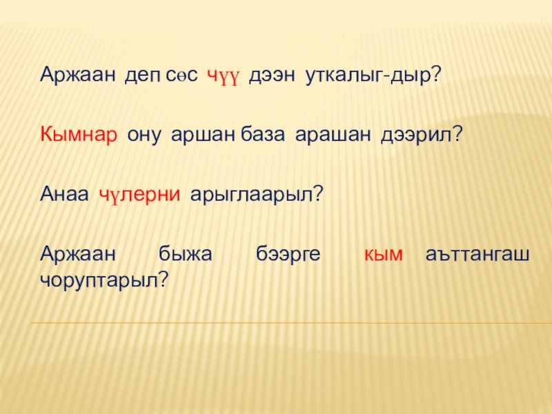 Слайд 6Чүвениӊ адын илередир болгаш кым? чүү? деп айтырыгларга харыылаттынар чугаа