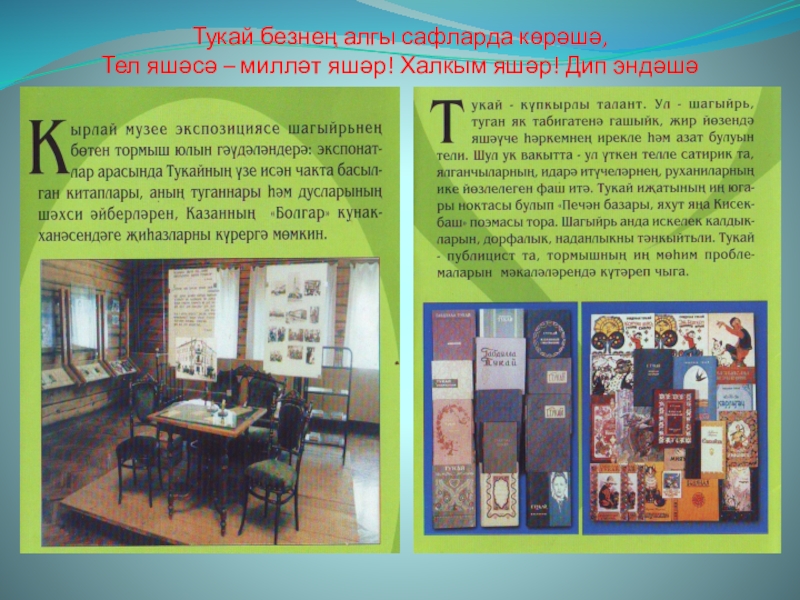 Слайд 15Тукай безнең алгы сафларда көрәшә, Тел яшәсә – милләт яшәр! Халкым яшәр!