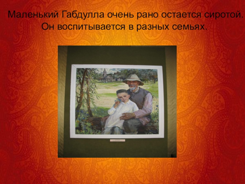 Слайд 6Маленький Габдулла очень рано остается сиротой. Он воспитывается в разных семьях.