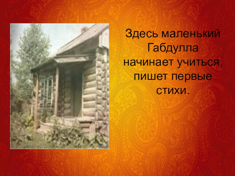 Слайд 7Здесь маленький Габдулла начинает учиться,пишет первые стихи.