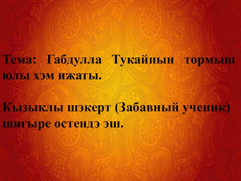 Тема: Габдулла Тукайнын тормыш юлы хэм ижаты. Кызыклы шэкерт (Забавный ученик) шигыре остендэ эш.