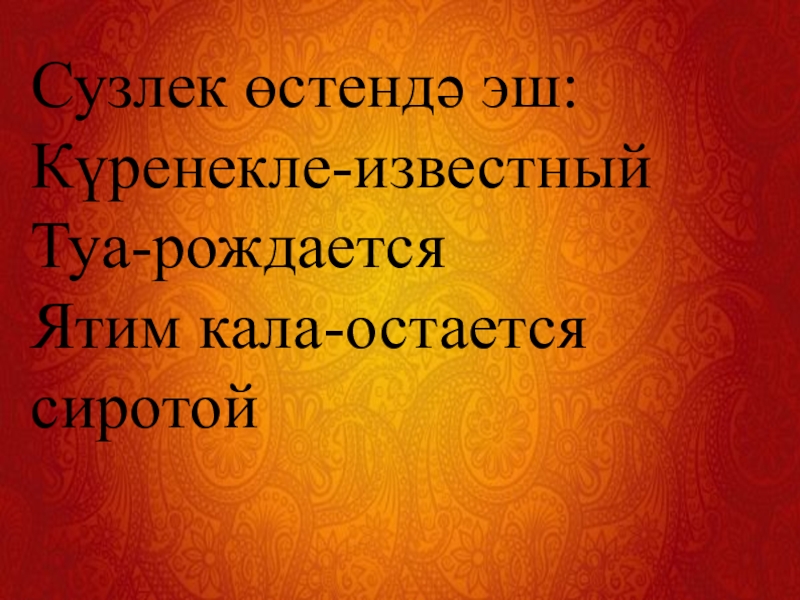 Сузлек өстендә эш:Күренекле-известныйТуа-рождаетсяЯтим кала-остается сиротой
