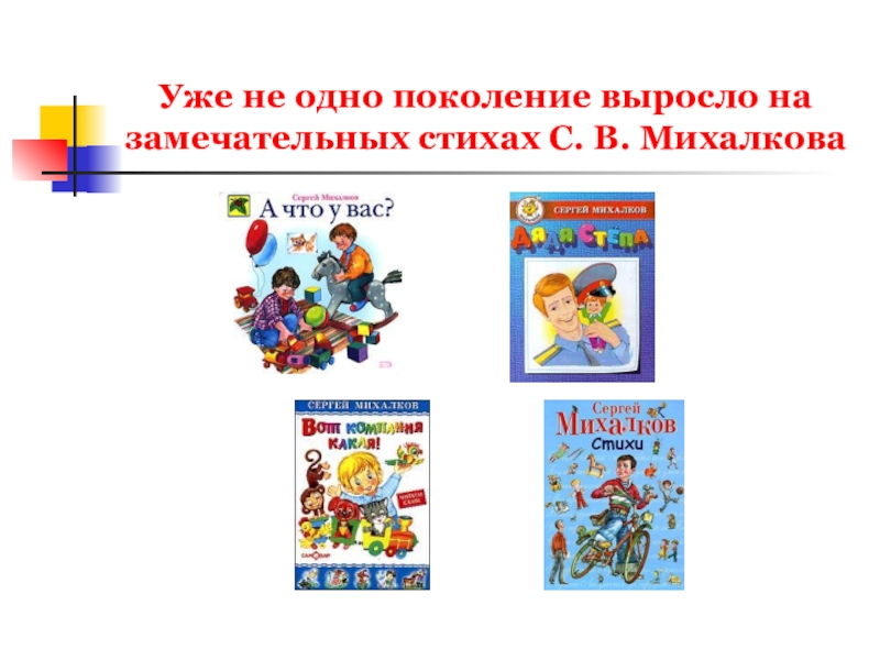 Слайд 5Уже не одно поколение выросло на замечательных стихах С. В. Михалкова