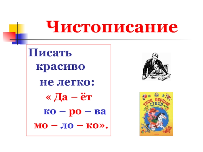 ЧистописаниеПисать  красиво   не легко:« Да – ёт   ко – ро – ва
