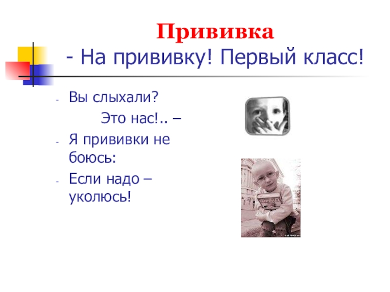 Слайд 10Прививка - На прививку! Первый класс!