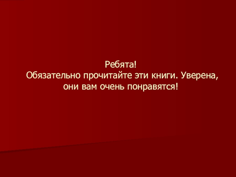 Ребята!  Обязательно прочитайте эти книги. Уверена, они вам очень понравятся!