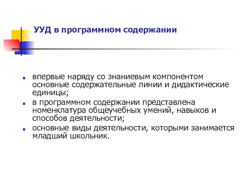 в программном содержании представлена номенклатура общеучебных умений, навыков и