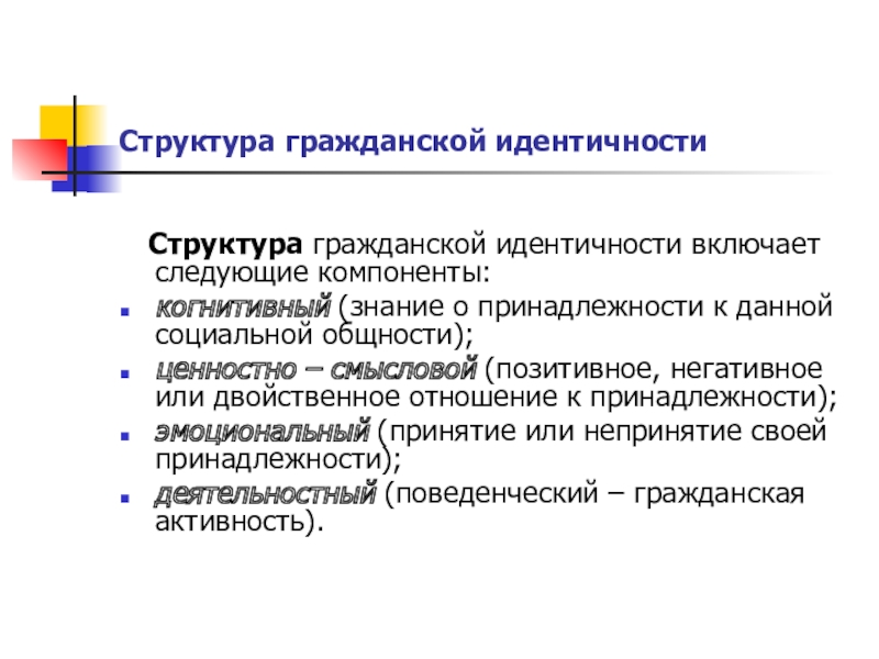 Гражданская идентичность трактуется как осознание личностью своей принадлежности к сообществу