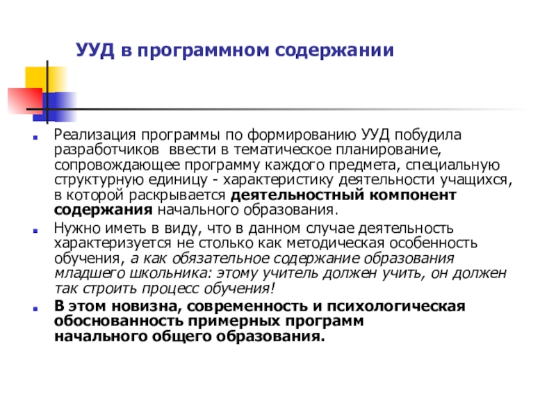 Реализация программы по формированию УУД побудила разработчиков ввести
