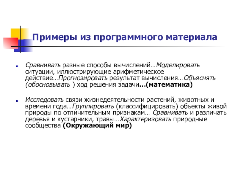 Сравнивать разные способы вычислений…Моделировать ситуации, иллюстрирующие арифметическое действие…Прогнозировать