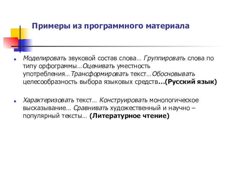Даже беглый анализ приведенных примеров показывает, что учебные