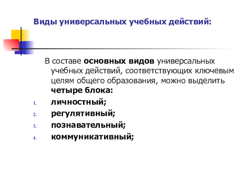 действий, соответствующих ключевым целям общего образования, можно выделить четыре блока: