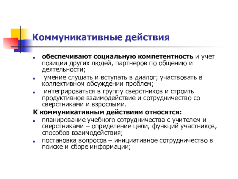 обеспечивают социальную компетентность и учет позиции других людей, партнеров по