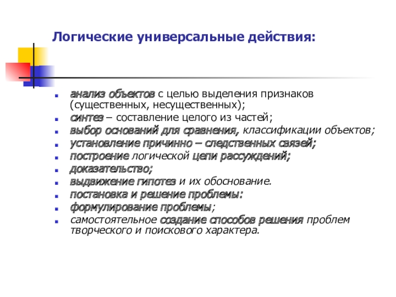 анализ, синтез, проводить сравнение и классификацию по заданным критериям, обобщать;