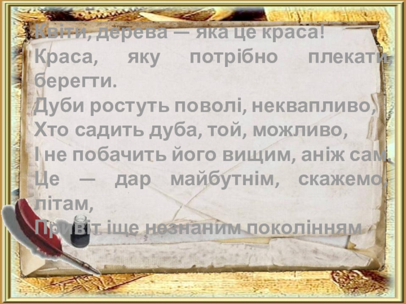 Квіти, дерева — яка це краса!Краса, яку потрібно плекати, берегти.