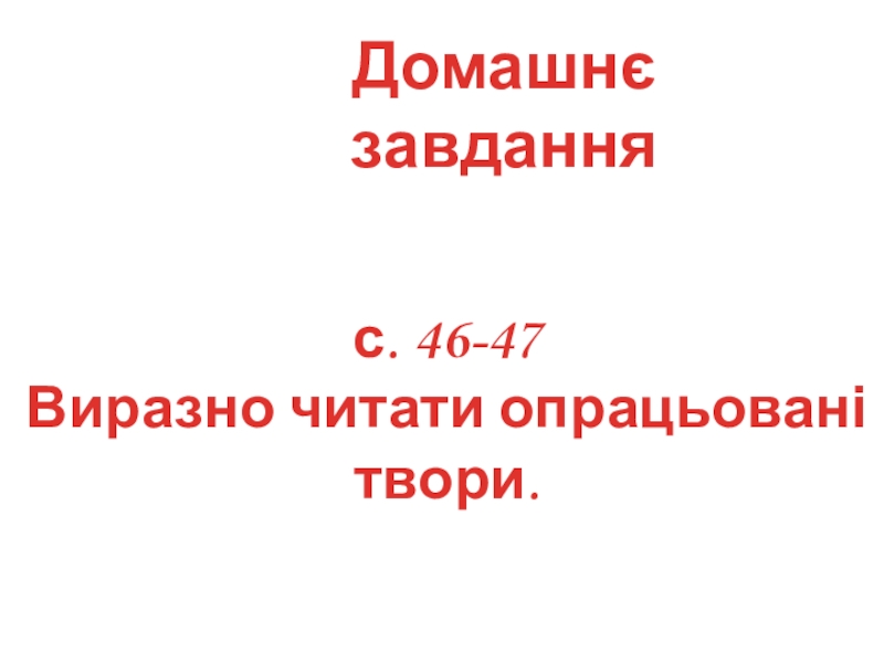 с. 46-47 Виразно читати опрацьовані твори.Домашнє завдання