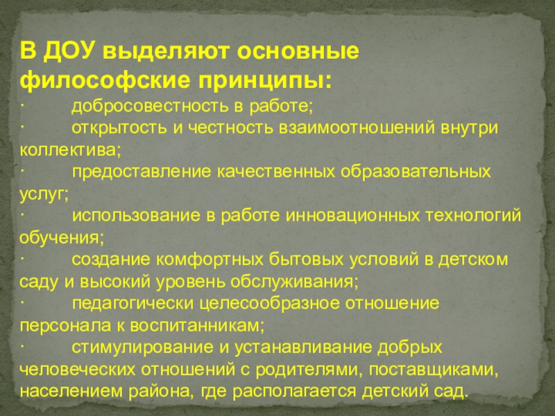 Слайд 6В ДОУ выделяют основные философские принципы: