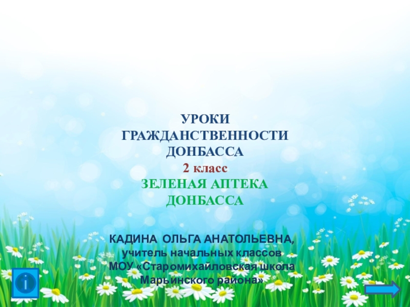 УРОКИ ГРАЖДАНСТВЕННОСТИДОНБАССА2 классЗЕЛЕНАЯ АПТЕКА ДОНБАССАКАДИНА ОЛЬГА АНАТОЛЬЕВНА,учитель начальных классовМОУ «Старомихайловская школа Марьинского района»