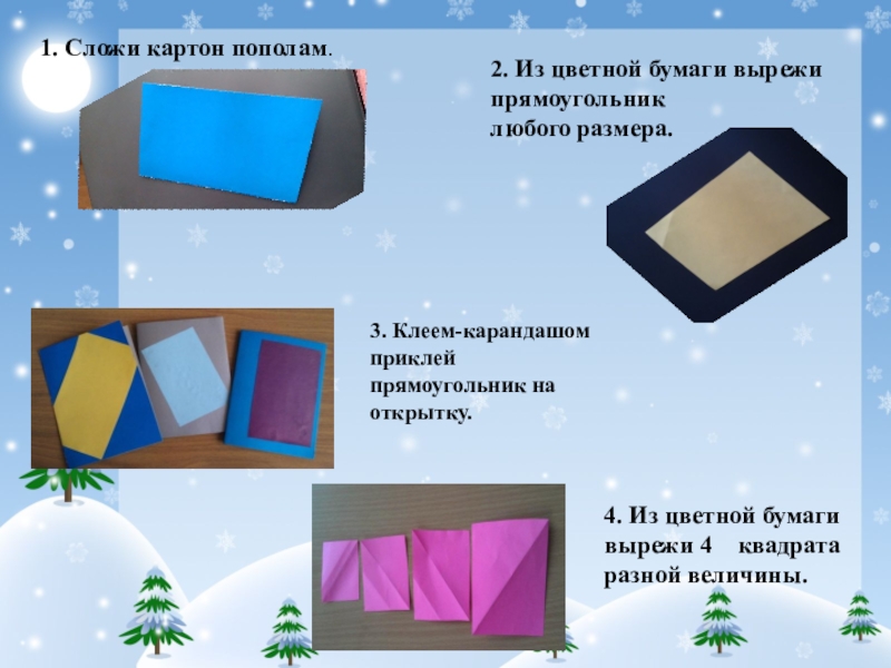 4. Из цветной бумаги вырежи 4 квадрата разной величины.