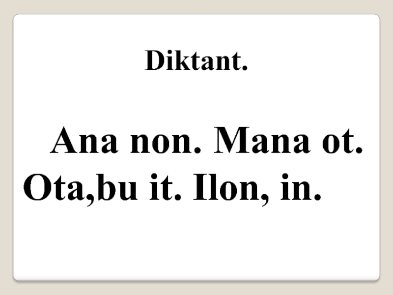 Diktant.  Ana non. Mana ot.Ota,bu it. Ilon, in.