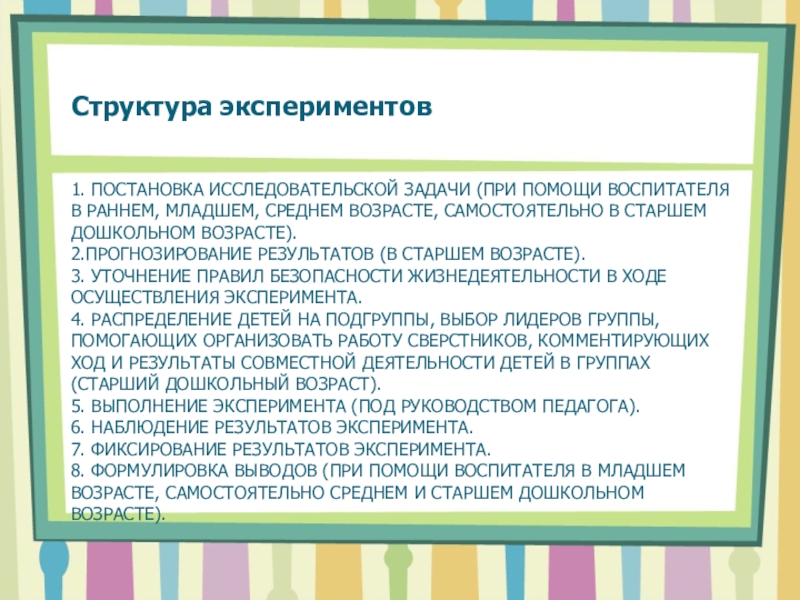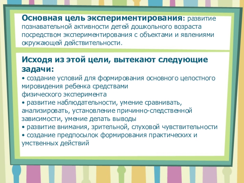 4. Выбор цели, задач работы с детьми (познавательные, развивающие, воспитательные).