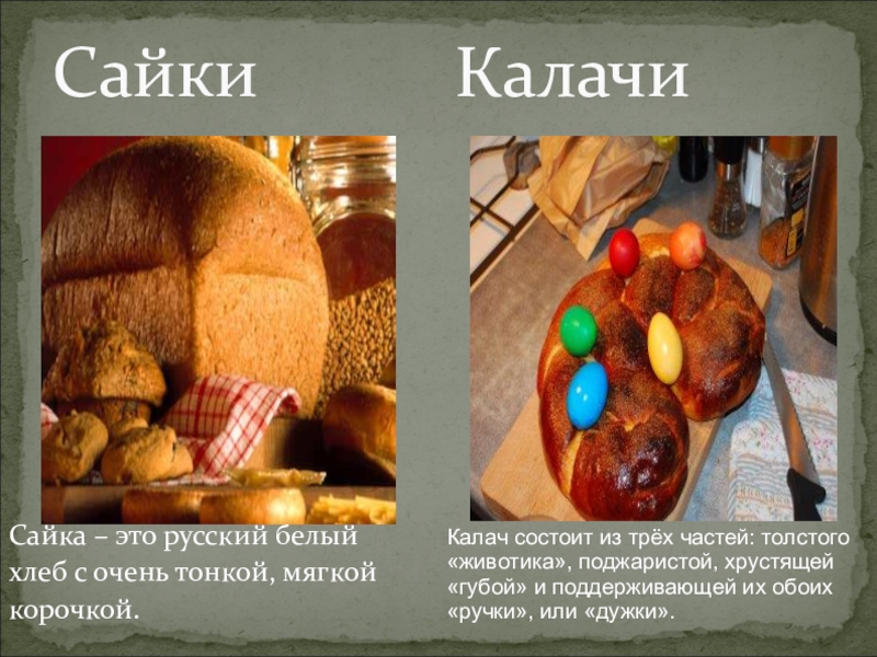 Калач состоит из трёх частей: толстого «животика», поджаристой, хрустящей «губой» и поддерживающей их обоих «ручки», или «дужки».