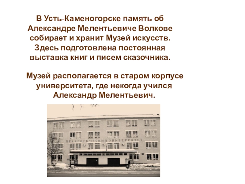 Музей располагается в старом корпусе университета, где некогда учился Александр Мелентьевич.