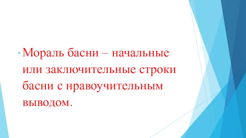 Мораль басни – начальные или заключительные строки басни с нравоучительным выводом.
