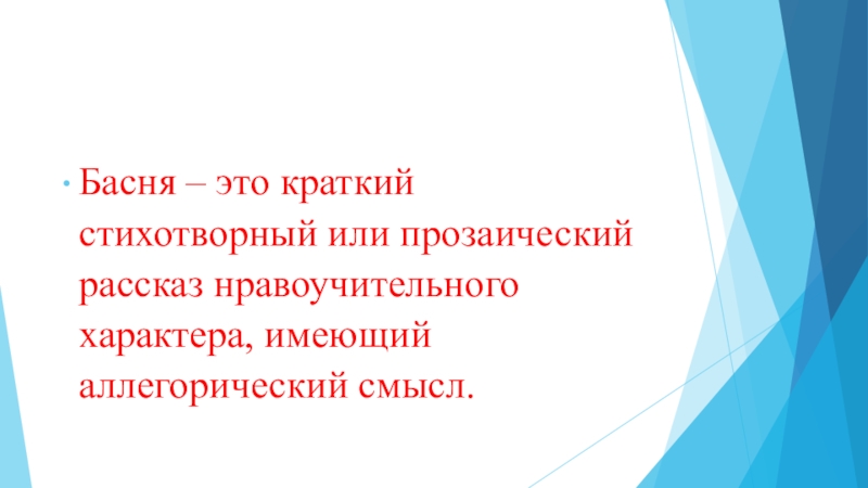 Басня – это краткий стихотворный или прозаический рассказ нравоучительного характера, имеющий аллегорический смысл.