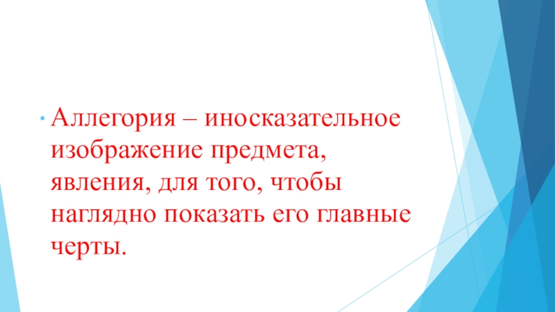 Аллегория – иносказательное изображение предмета, явления, для того, чтобы наглядно показать его главные черты.