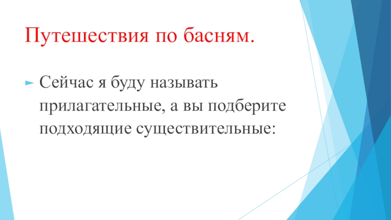 Путешествия по басням. Сейчас я буду называть прилагательные, а вы подберите подходящие существительные: