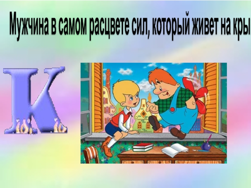Слайд 20Мужчина в самом расцвете сил, который живет на крыше.