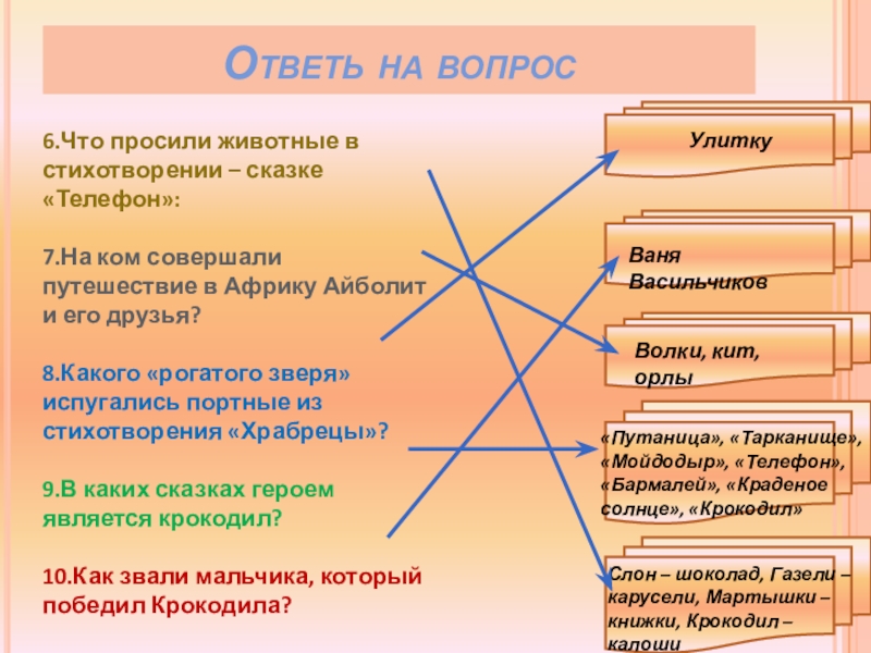 Слон – шоколад, Газели – карусели, Мартышки – книжки, Крокодил – калоши