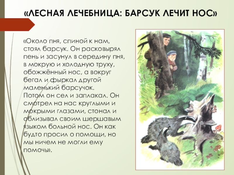 Константин Паустовский в своём рассказе не только описывает барсука, его внешний вид, повадки, но и выражает отношение к этому живому существу, да так образно, что читатель может себе его представить и, конечно же, пожалеть. Поэтому-то данное произведение относится к художественному стилю.