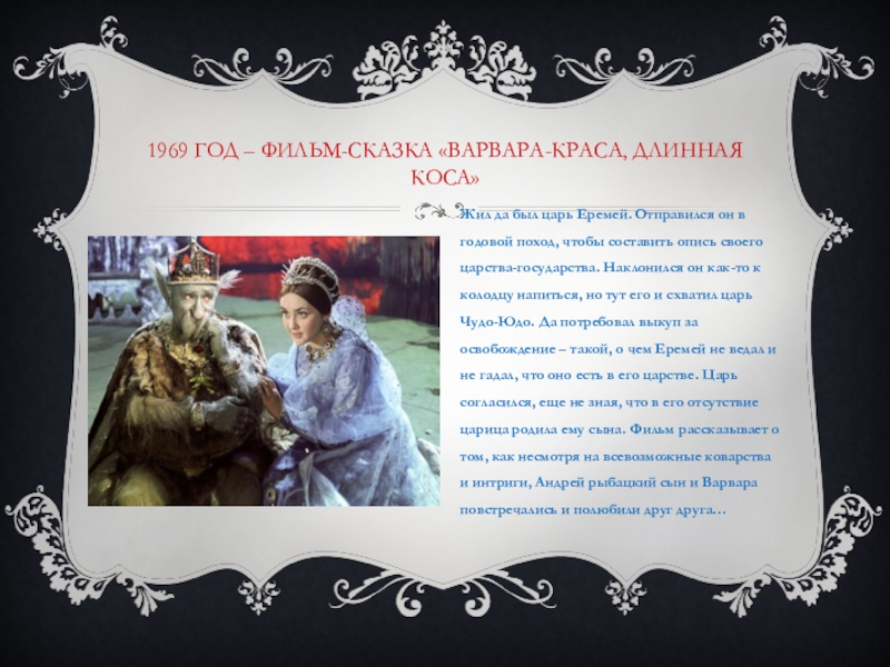 Слайд 161969 год – фильм-сказка «Варвара-краса, длинная коса»
