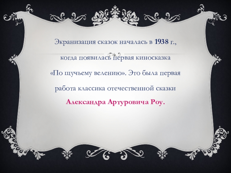Слайд 3Экранизация сказок началась в 1938 г.,
