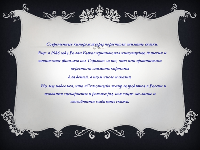 Слайд 26 Современные кинорежиссеры перестали снимать сказки.