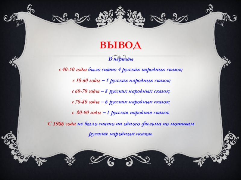 С 1986 года не было снято ни одного фильма по мотивам русских народных сказок.