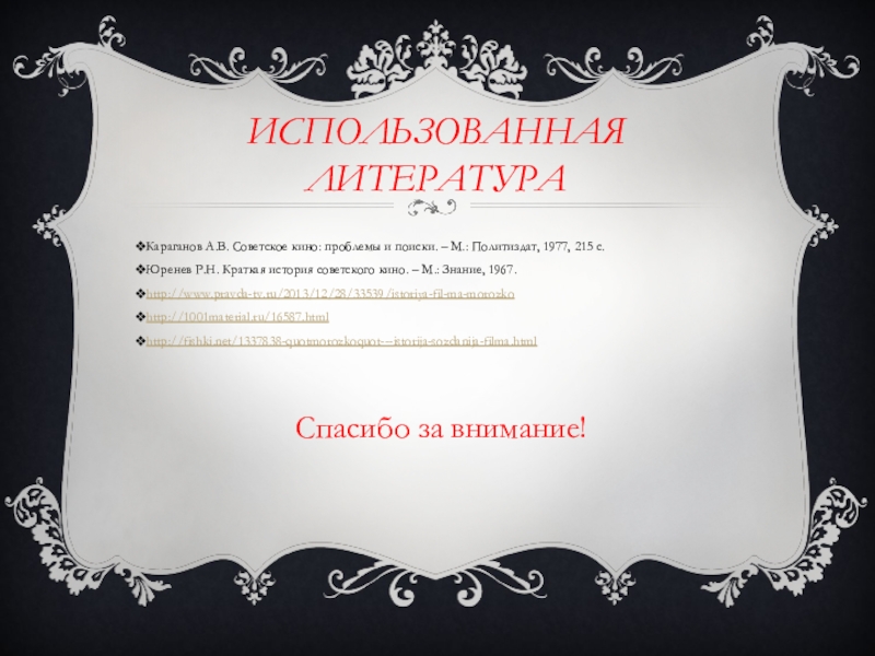 Юренев Р.Н. Краткая история советского кино. – М.: Знание, 1967.