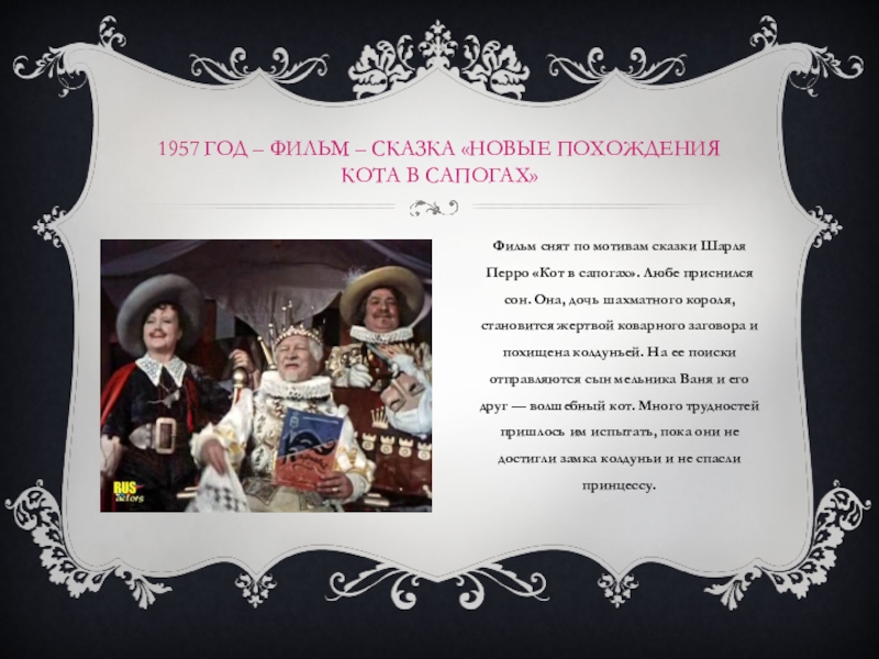 1957 год – фильм – сказка «Новые похождения кота в сапогах»