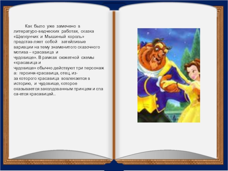 Как было уже замечено в литературо-ведческих работах, сказка «Щелкунчик и Мышиный