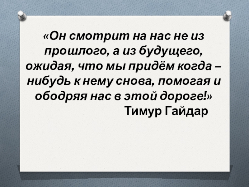 что мы придём когда – нибудь к нему снова, помогая и ободряя нас в этой дороге!»