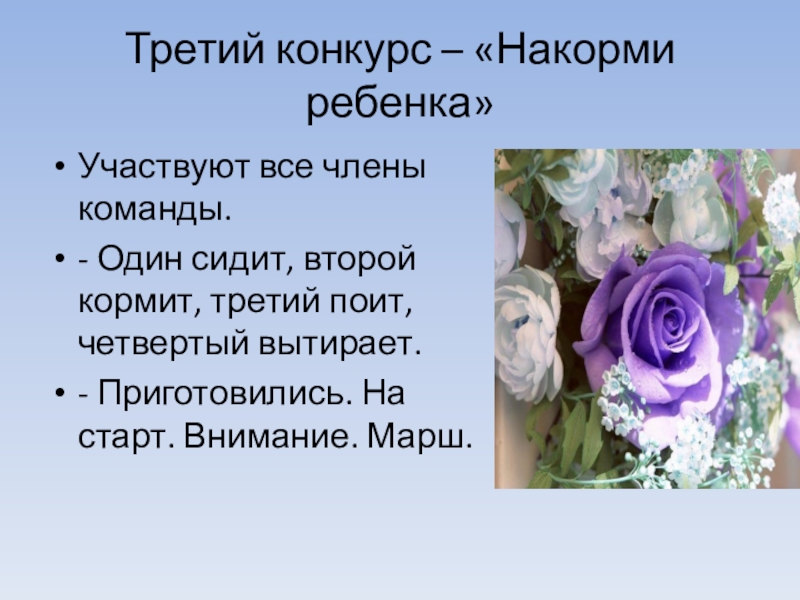 Слайд 6Третий конкурс – «Накорми ребенка»