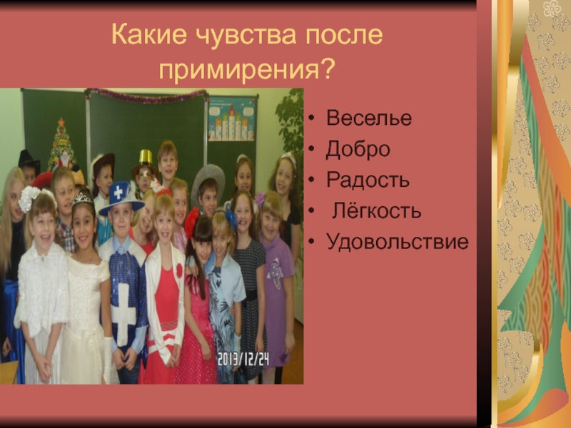 Какие чувства после примирения?ВесельеДоброРадость ЛёгкостьУдовольствие