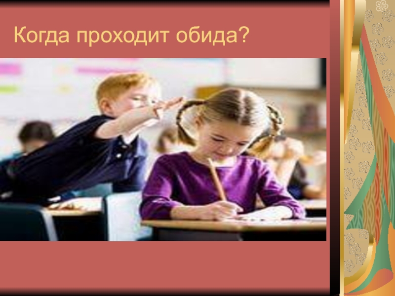 Что такое обида?Какой может быть повод для обиды?Кого следует бояться?Невозможно обидеть только бревно на дороге.Живое болит и, следовательно, обижается.