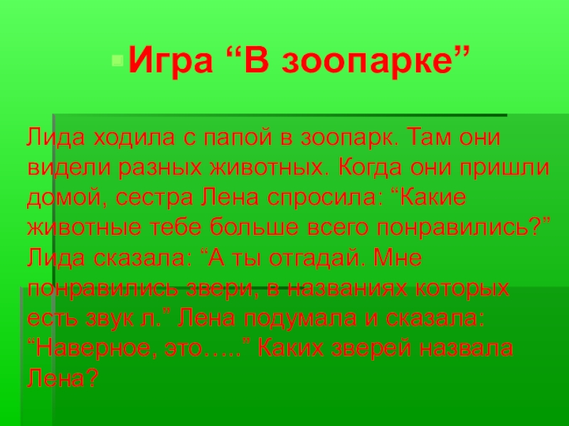Игра “В зоопарке”