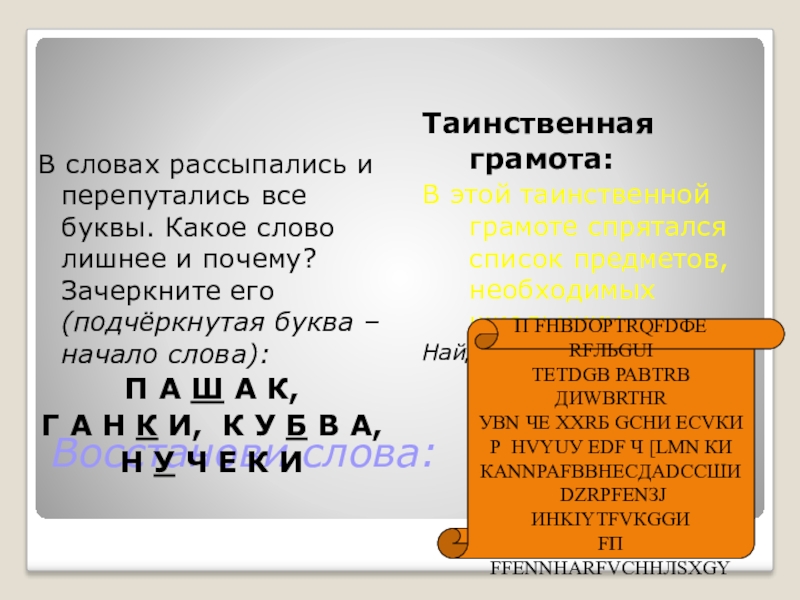В этой таинственной грамоте спрятался список предметов, необходимых школьнику.