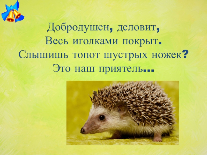 Добродушен, деловит,  Весь иголками покрыт.  Слышишь топот шустрых ножек?  Это наш приятель…